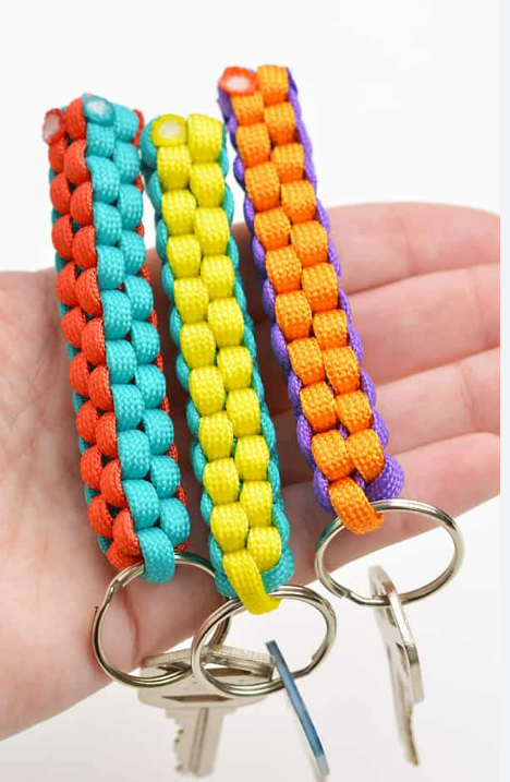 Learn about mindful paracord weaving and make this clever box-chain keyring.